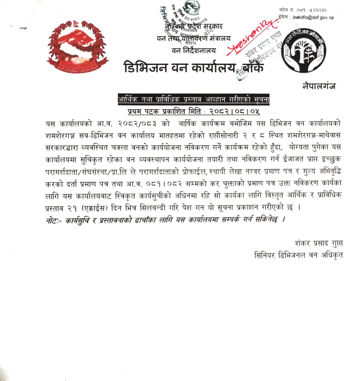 डिभिजन वन कार्यालय बाँकेको काठ/दाउरा लिलाम सम्बन्धी सुचना ।